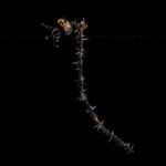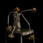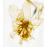 Dried flowers – left in water and thus fixed on old diapositive glasses – replace the photo emulsion. Light turns them into delicate photographs. An Apparition of Memory is a homage to the beauty of aging and the passage of time. The images reveal the astonishing details of nature’s sophisticated constructions otherwise not visible to a human eye. I merge the ephemeral nature of a light drawing with the preservation of a photograph. I do not categorize the flowers but try to go beyond it and transform every flower into something unique. It is like taking a portrait of an individual being that has a story to tell. Every title is a quote from a song or a TV show, a movie or a poem.