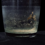 For the series «An Apparition of Memory» I started to collect flowers that I stumble upon along the road that leads to my studio and let them dry. Like a scientist I fix the found flowers to old diapositive glasses leaving them in salty or calcareous water to dry. Under a shroud of kalk and salt crystals the flowers literally get dried onto the slides and become the photo emulsion. They become diapositives.