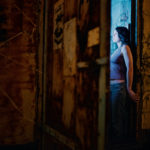 In Watching a dark, square-shaped image gives way to a view of a woman. Her heightened alertness expressed by subtle gesture, caused by something we don’t see generating an atmosphere of suspense, creating an image of something we might have seen before. The women are caught in a moment of raised awareness. Something unfamiliar seems to be going on. The photographs depict the moment just before the women realize what is happening – the moment of highest tension. I stage situations which female viewers may recognize as if they have experienced them themselves, though in many cases their experience is limited to the virtual reality of movies and TV. We can empower women by anticipating a different outcome for the story in the image than we are used to from film and novels. The gaze in my photographs is an important tool to create a narrative and to question the viewer’s notion of looking and watching.
