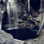 suspension surrounding a rock on the bottom of the sea, a shadow and halo that overlap,